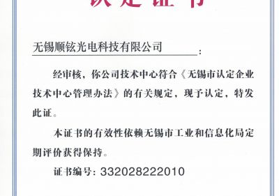 • 無(wú)錫市企業(yè)技術(shù)中心證書(shū)