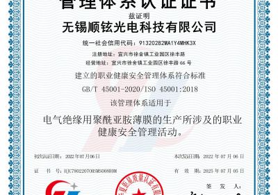 • 無(wú)錫順鉉光電職業(yè)健康安全管理體系認(rèn)證證書(shū)(S)